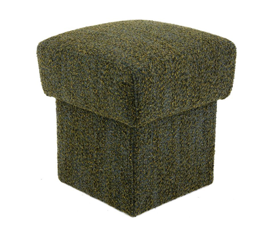 This mushroom-shaped stool is a delightful pop of color and texture. A well-padded seat of olive bouclé rests atop a matching base.