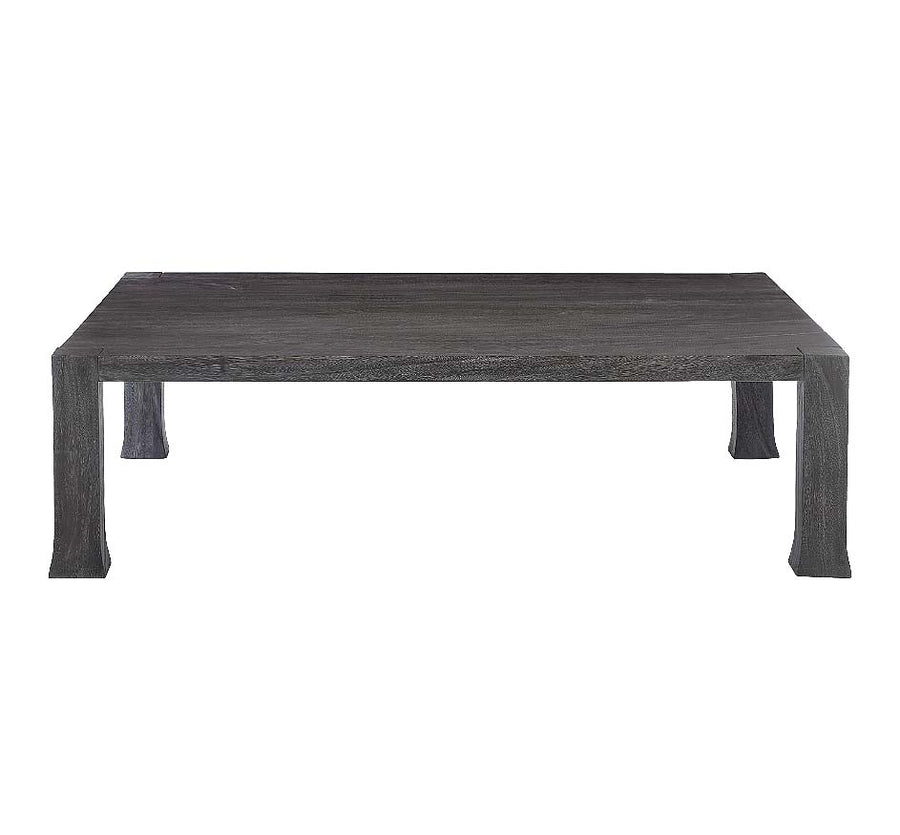 Sculptural and minimalist, this cocktail table crafted from carbonized wood offers the rich texture of a rustic finish.