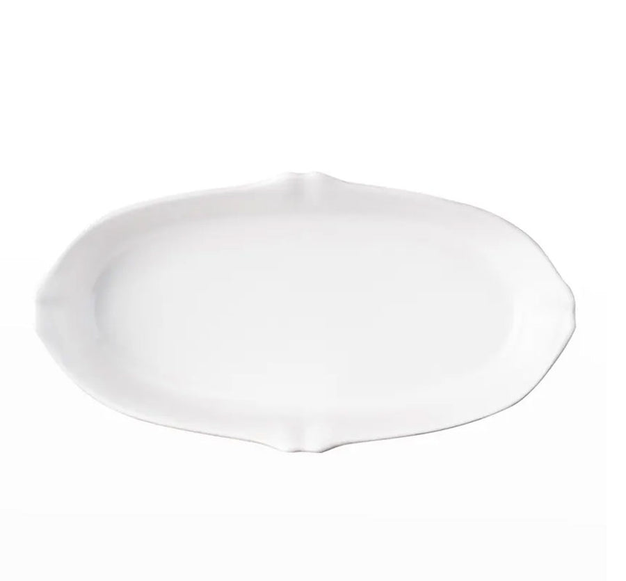 From our Berry & Thread Collection- Rimmed with a simple thread and adorned with a sprinkling of berries, this iconic dinnerware collection embraces the historic motifs of our Bohemian glassware. This 12" oblong, oval serving dish features high sides, subtle scallop detail and is ideal for carrying side dishes straight from oven-to-table.