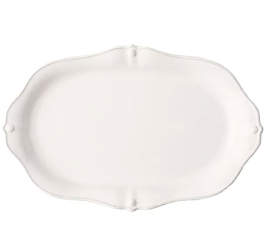 From our Berry & Thread Collection - Rimmed with a simple thread and adorned with a sprinkling of berries, this iconic dinnerware collection embraces the historic motifs of our Bohemian glassware. Ideal for a large gathering, this 20" platter with a subtly scalloped edge will take your roast straight from oven to table.