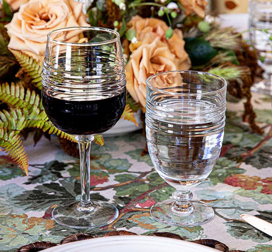 If you’ve ever poetically dropped a pebble into water and watched the mesmerizing rippling effect, you’ll recognize that radiating beauty that inspired this collection. Balancing just the right amount of simplicity with subtle eye-catching glimmer to pair with white or red wine, and for swirling and sipping through al fresco lunches and upscale dinner parties alike.