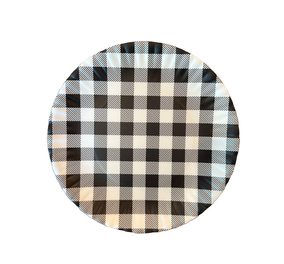 These melamine plates boasts a timeless black gingham design, perfect for adding a touch of rustic charm to any table setting. The plates are made from durable, high-quality melamine, making them both shatterproof and dishwasher safe. Featuring a classic checkered pattern in black and white, these plates are ideal for casual dinners, picnics, and outdoor entertaining. With their lightweight feel and stylish design, these plates are a fashionable and practical choice for any home cook or entertainer.