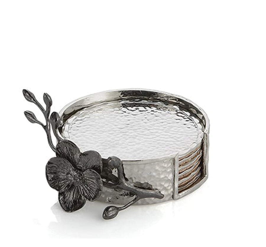 The Michael Aram Black Orchid Collection was inspired by the powerful sensuality of orchids and the rich ambiance of haute couture...strikingly simple yet full of the most extreme detail. The collection has an almost gothic feeling...opiated, lush and smoldering...like the dark, velvety atmosphere of a luxurious evening. Black nickelplate and nickelplate finish.