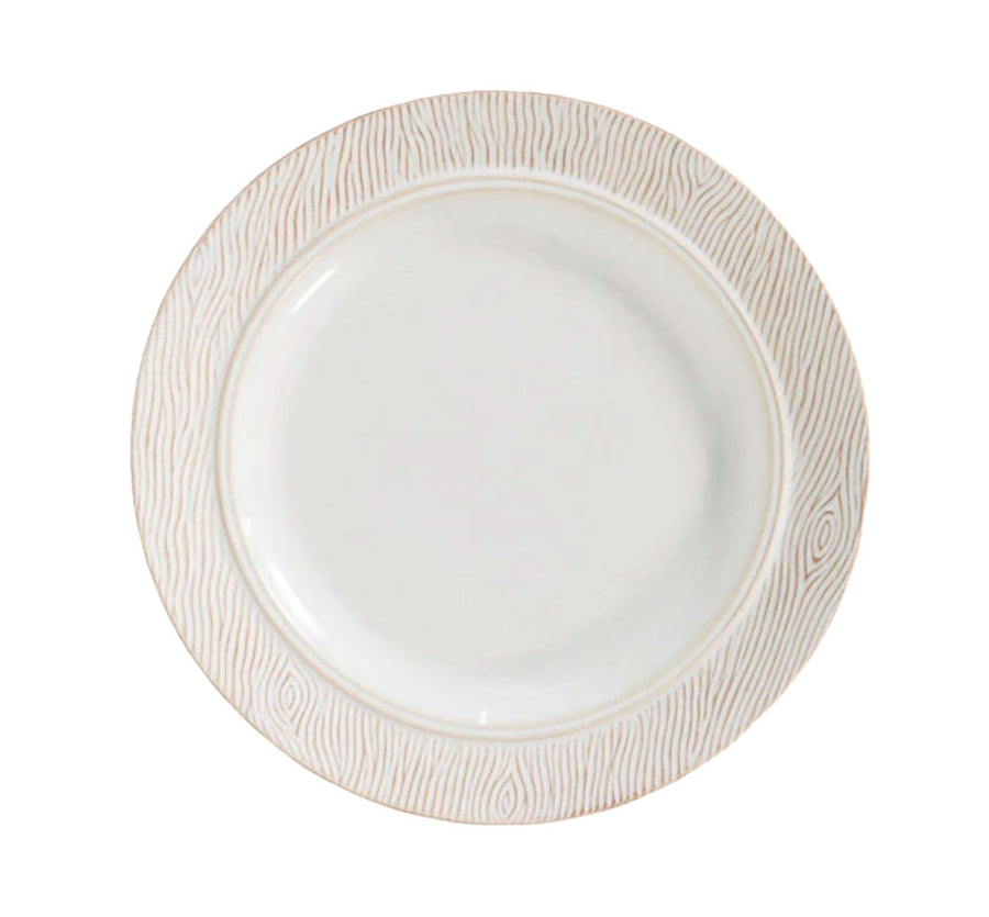 Inspired by the oldest grove of oak trees in England’s Blenheim Park, this woodgrain textured collection is rendered in a fresh and peaceful palette of creams and warm browns, with our signature whitewash glaze and a patina to highlight the beautifully rich motif. Equally idyllic and chic, this versatile plate was designed to complement everything -- from a slice of birthday cake to tapas or toast.