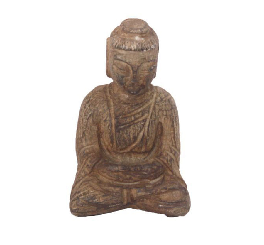 This hand carved Buddha is almost pocket sized. Just right for a side table, desk, or bookshelf. Minor variation in color, shape, glaze etc. is expected.