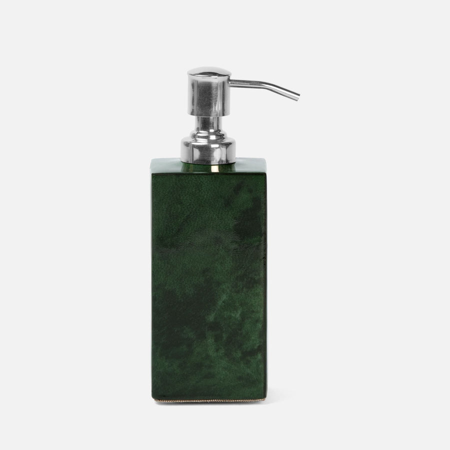 Add some elegant touches with this faux vellum bath collection with shiny lacquer. The rich emerald green speaks of understated opulence.