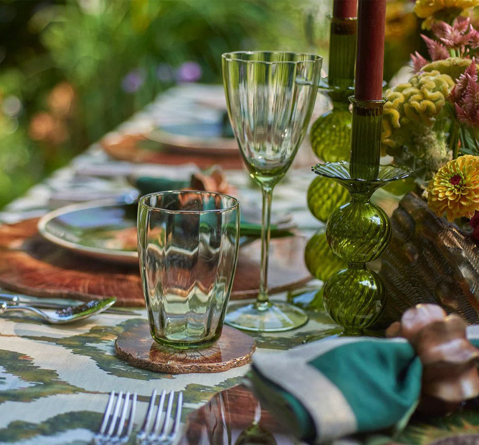 The wood-slice Cedar Coasters combine rustic style with ease of use; the versatile, acrylic coasters can be easily wiped clean and feature a cork backing. Sold as a boxed set of four, these make a wonderful gift for a cozy, cabin feel.