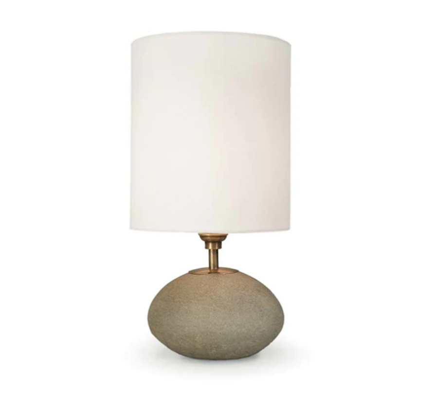 Clean lines and elemental materials lend an iconic quality to this mini lamp. Its orb profile is a timeless, classic shape that spans centuries. Fitted with natural brass hardware, a tall natural linen cylinder shade, and topped with a round natural brass finial, the Concrete Min Orb is perfect for a modern industrial look.