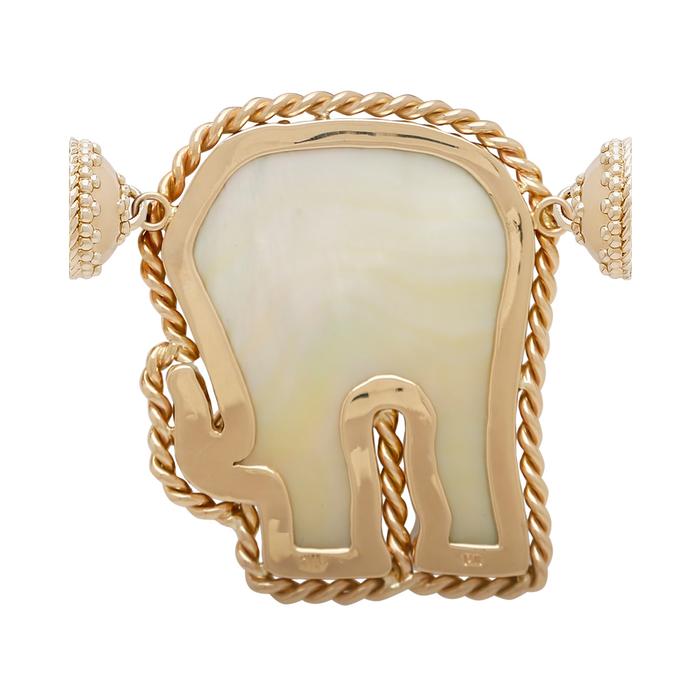 A memorable addition to your collection. Carved stone set in 14k gold, reversible to mother of pearl.