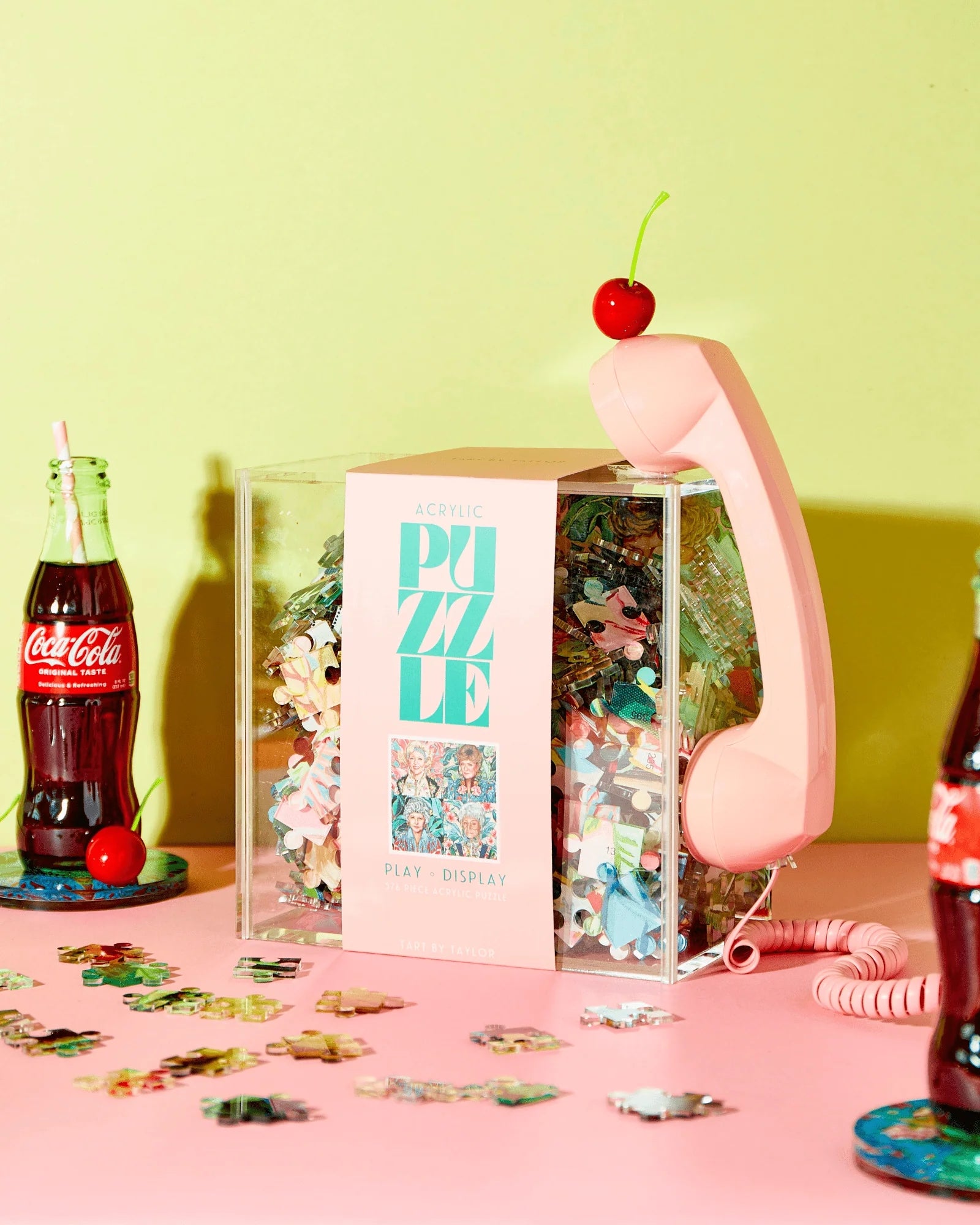 Piece together your love for the iconic "gals" with our Golden Gals Acrylic Puzzle. Made from durable acrylic material, this puzzle features the beloved best friends. With its bold design and matching acrylic display box, this puzzle is both playful and stylish. Show off your puzzle-solving skills with a display that's as unique as you are. Play + display with this stunner!