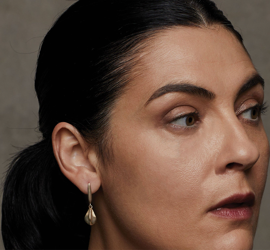 Bronze Grain with Cone drop earring and gold filled post; 1.25 inches. An elegant earring to wear day into evening.