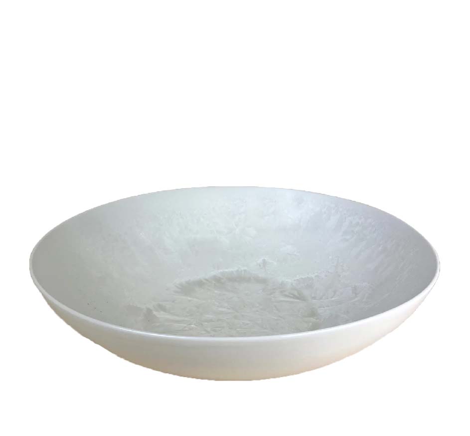 Agate imported from the remote caves of…..no, just kidding; The Michael Wainwright USA Borealis collection is actually clay with a really cool crystal glaze, , and hand finished in Western Massachusetts by Michael himself. The Borealis collection is sure to attract attention.