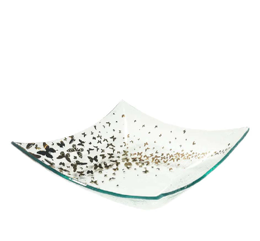 Butterflies gracefully flutter across of this square glass bowl. For sweethearts, moms or girlfriends send butterflies instead of flowers. They'll last forever. This versatile bowl is perfect for a romantic 2-person salad or a large candle.
