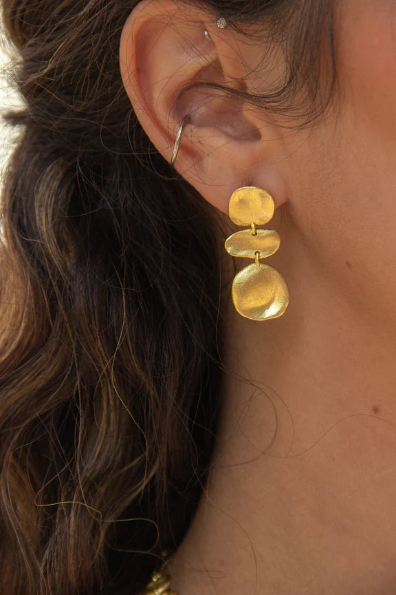 18k gold plated earrings with molten brushed gold coins.