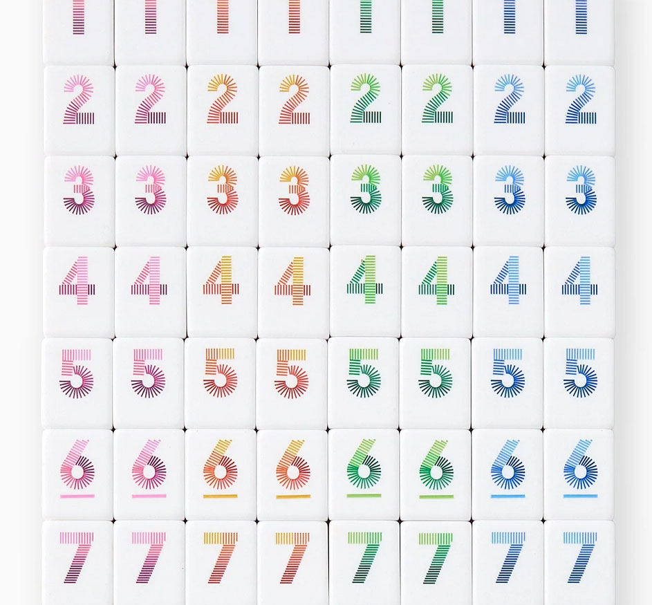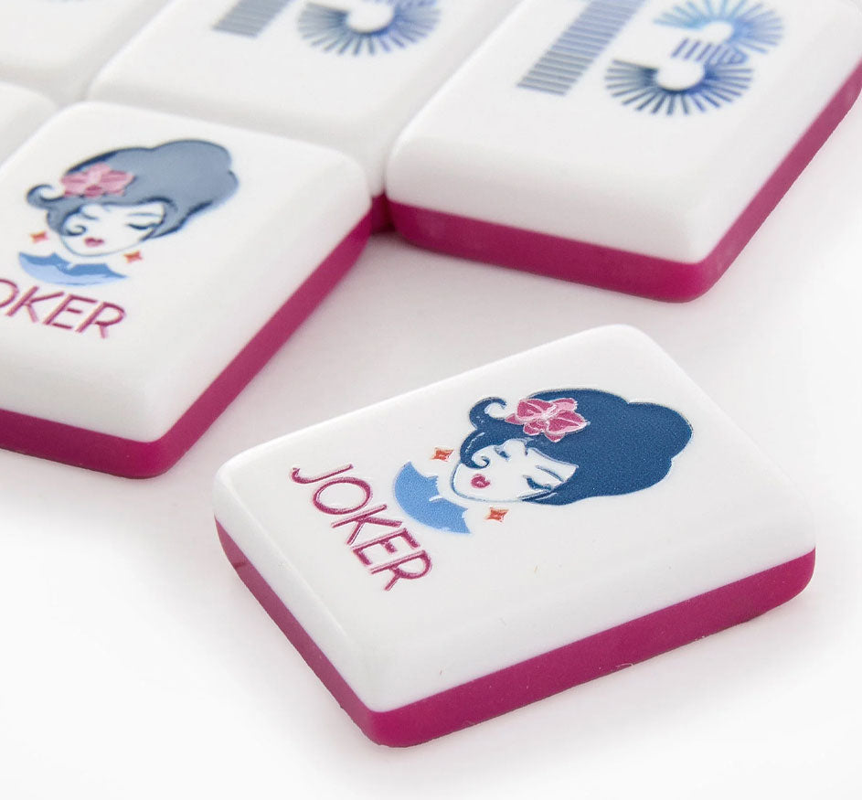 Introducing Confetti Oh My Rummi, a swoon-worthy set that brings vibrant fun and sophisticated charm to your game nights. The bright pink tiles are perfectly paired with a light mint carrying case, creating a delightful color combination that's playful and elegant. Inside the case, you'll find the stunning watercolor art from the Capri Mat, a collaborative design by Catherine Cartie and Emily Nichols, adding a touch of artistic flair and beauty to every game you play.