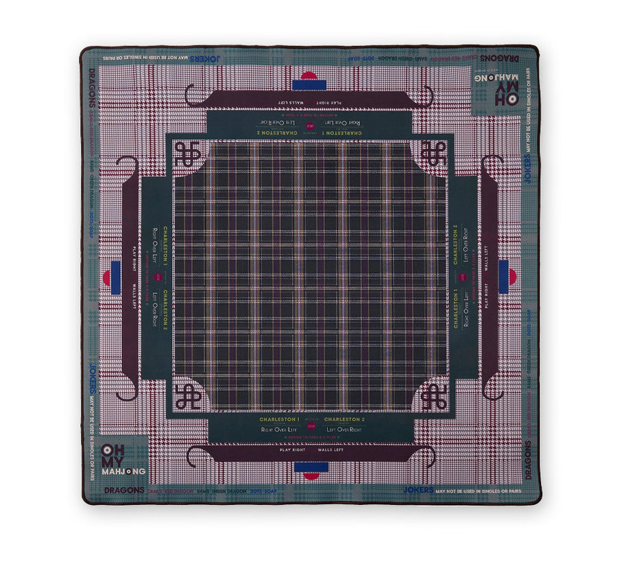 The Man-Jong Collection: Step into the distinguished world of Man-Jong with the Dapper Mat – a rugged blend of forest green, burnt orange, navy and coffee hues that brings an alluring element and touch of sophisticated style to any game room. Every game night with the Dapper Mat, you'll be immersed in a refined atmosphere that echoes the timeless charm of classic menswear. Its non-slip surface ensures that your game stays steady, allowing you to play with the precision and confidence of a seasoned mahjong enthusiast. And, with essential rules for American Mahjong thoughtfully placed along the sides, you'll have everything you need to master the game with ease.