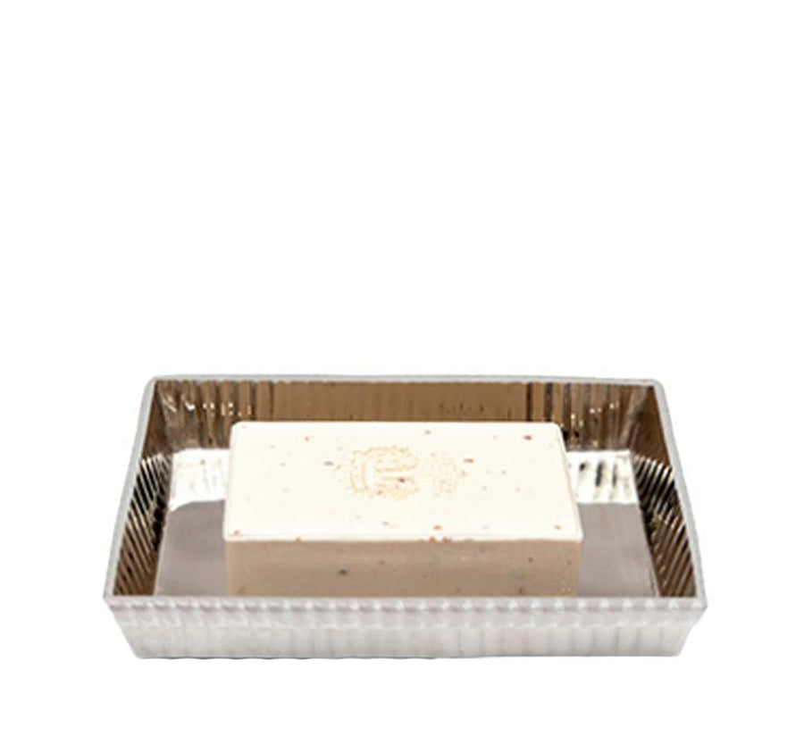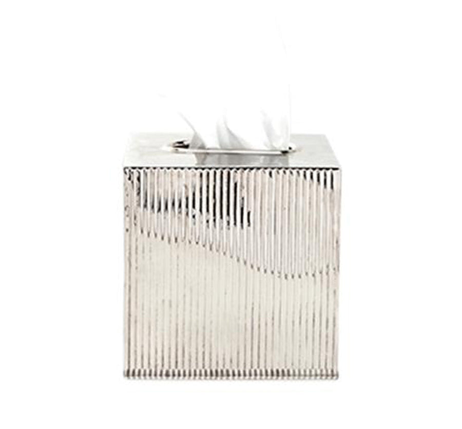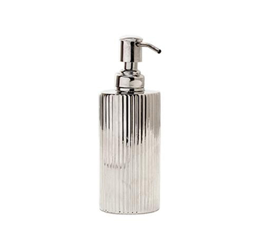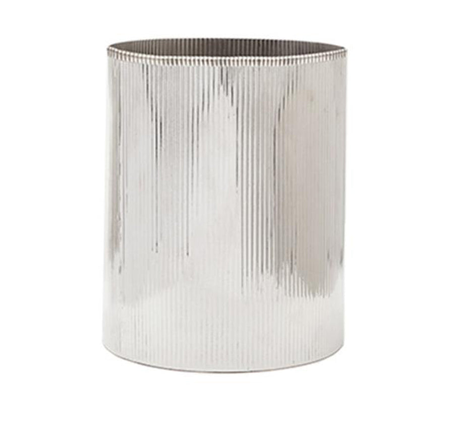 Set a masculine tone with our ribbed metal Redon. Pair the shiny nickel with glass accessories for an Art Deco–feel that features just the right amount of glam.