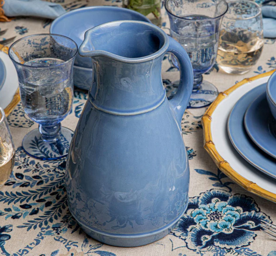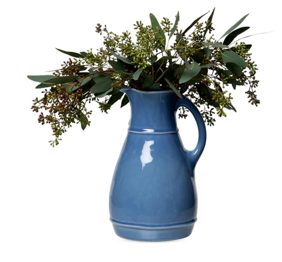 From fresh juices to a bundle of blooms, this Chambray blue ceramic pitcher offers an organic texture that blends everyday elegance with practicality to suit every decor aesthetic with ease.
