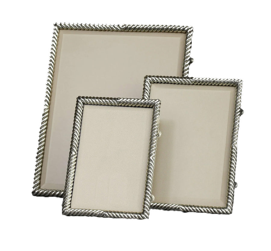 Timeless and refined picture frame design meticulously handcrafted with 24K gold and platinum plating, beveled glass, satin lining and Italian leather and suede backs with beautifully detailed closures.