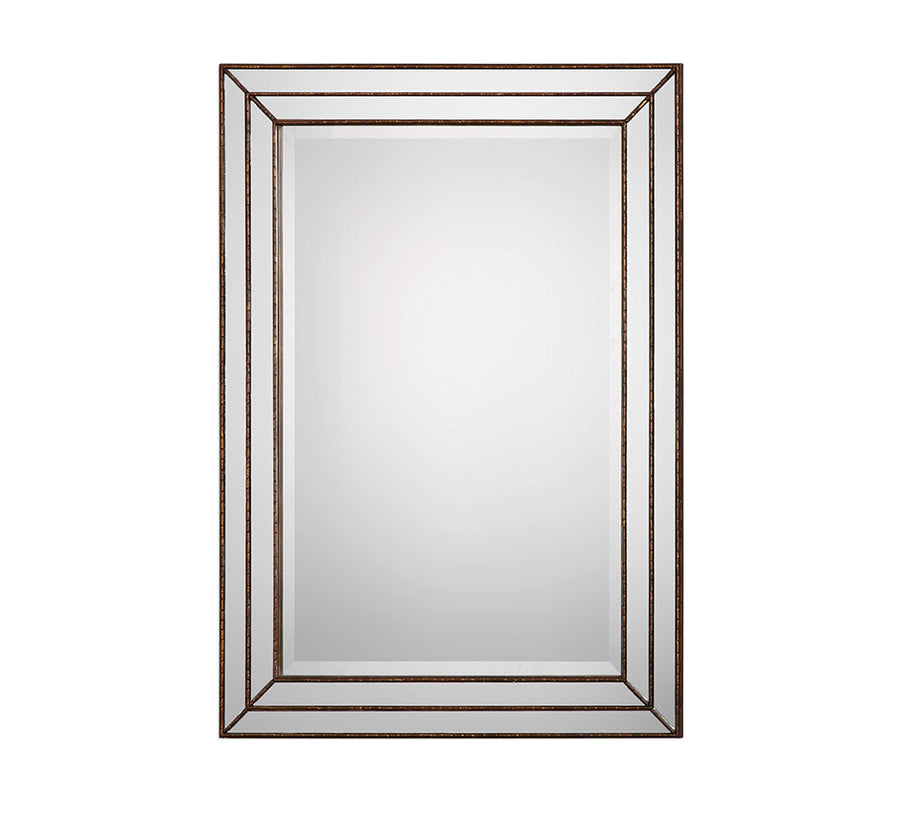 Metallic bronze finish featuring grooved texture and mirror inlays.