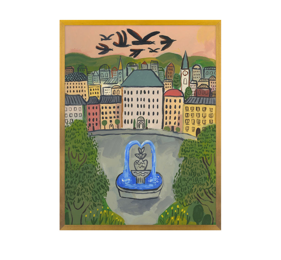 Michael Doyle is a self-taught visual artist, born and living in Seattle. He began by showing his artwork in bookstores, shoe shops, coffee shops, galleries, and church basements. Classic films, memoirs and forest walks are favorite forms of inspiration, creating a feeling of nostalgia and curiosity that can be found in his paintings. Michael’s studio came together naturally as a way to share his creative practice and to create a storytelling with his paintings. Transform your space with this archival digital print on canvas. Each piece is expertly framed in a gold frame, hand embellished, and arrives complete with convenient wire for easy hanging.