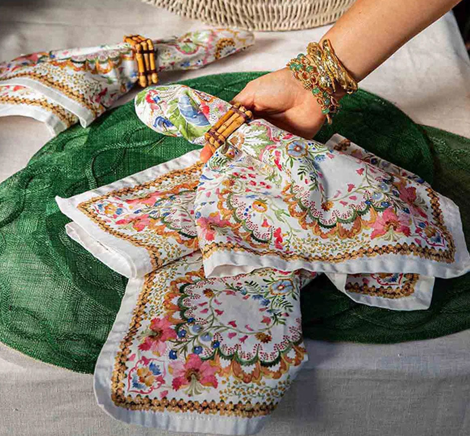 This irresistibly pretty napkin is made with cotton sateen linen to enliven any tablescape with its balance of lavish and relaxed style. A fantasy garden of imagined blossoms in an enchanting array of vibrant hues mixes and matches beautifully with other collections, whether you're feeling maximalist and scheming pattern-on-pattern or needing a fabulous pop of color to accentuate a neutral setting.