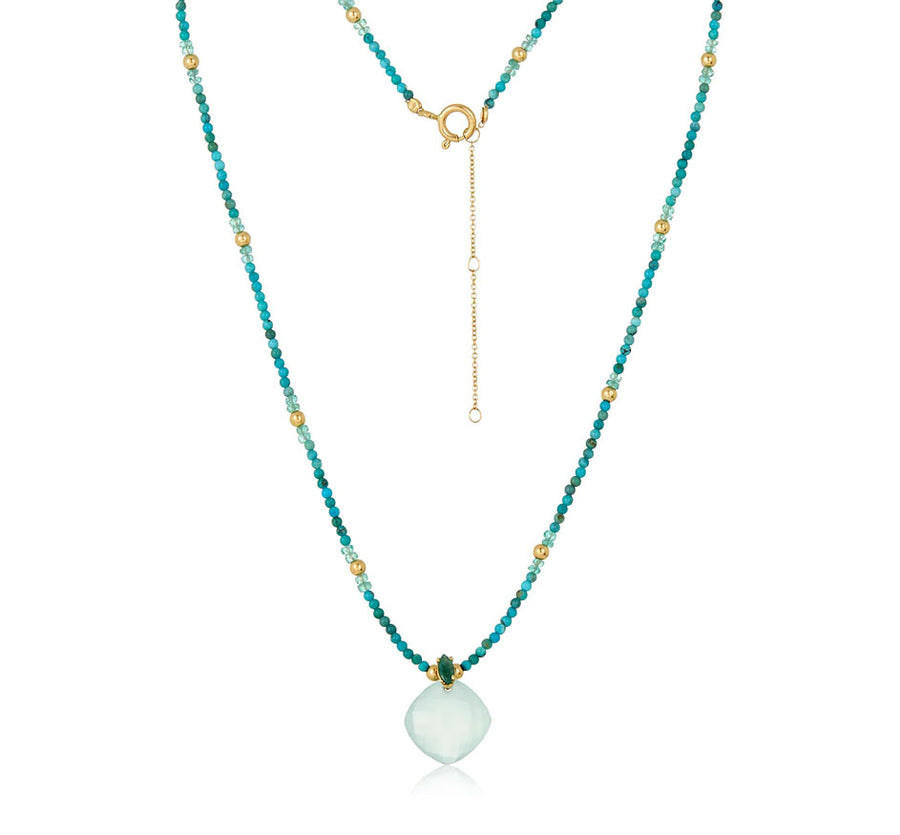 Petite 1mm turquoise beads strung with 14k gold balls,