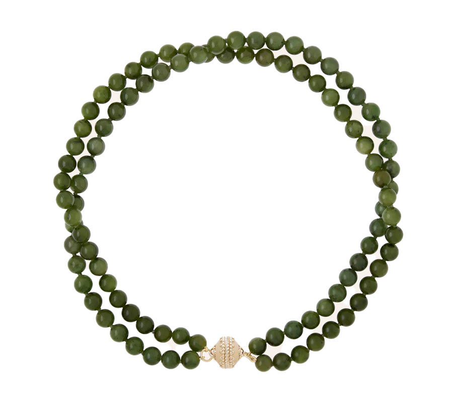 Elevate your style with the Victoire Canadian Jade necklace. Made from Green Canadian Jade, hand-strung with a signature 14k yellow gold ClaraClasp.