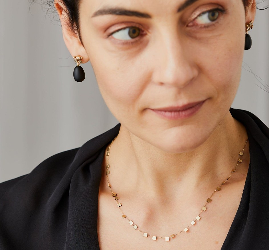 The fluttering nature of Bertoia's sculpture creates a transcendent place in the MIT Chapel designed by Eero Saarinen. This necklace emulates this piece. Wear it everyday on its own or layered with other chain necklaces.