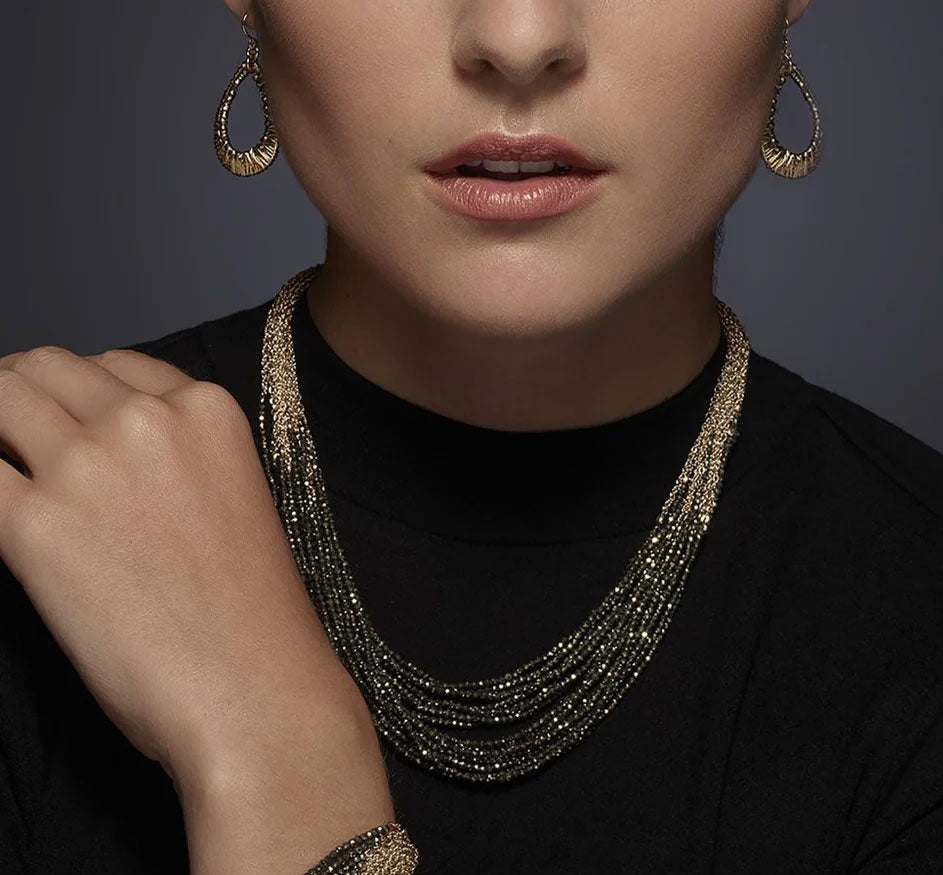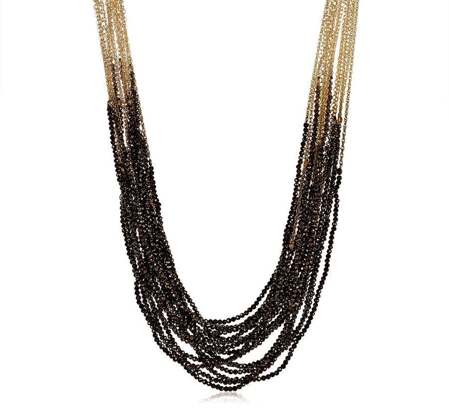 Lush life! 18 strands of tiny gemstones are embellished by a gold-filled cable chain to create an adjustable necklace that stops traffic.