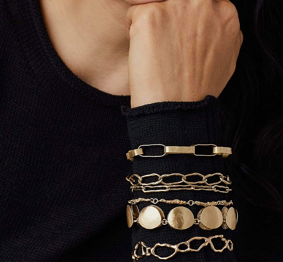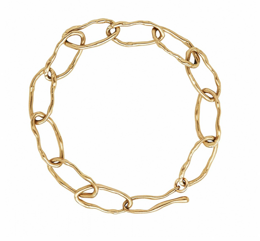 Bronze Greco links create a striking chain necklace; 18 inches. Hand drawn in wax and then cast, Julie created these chain links.