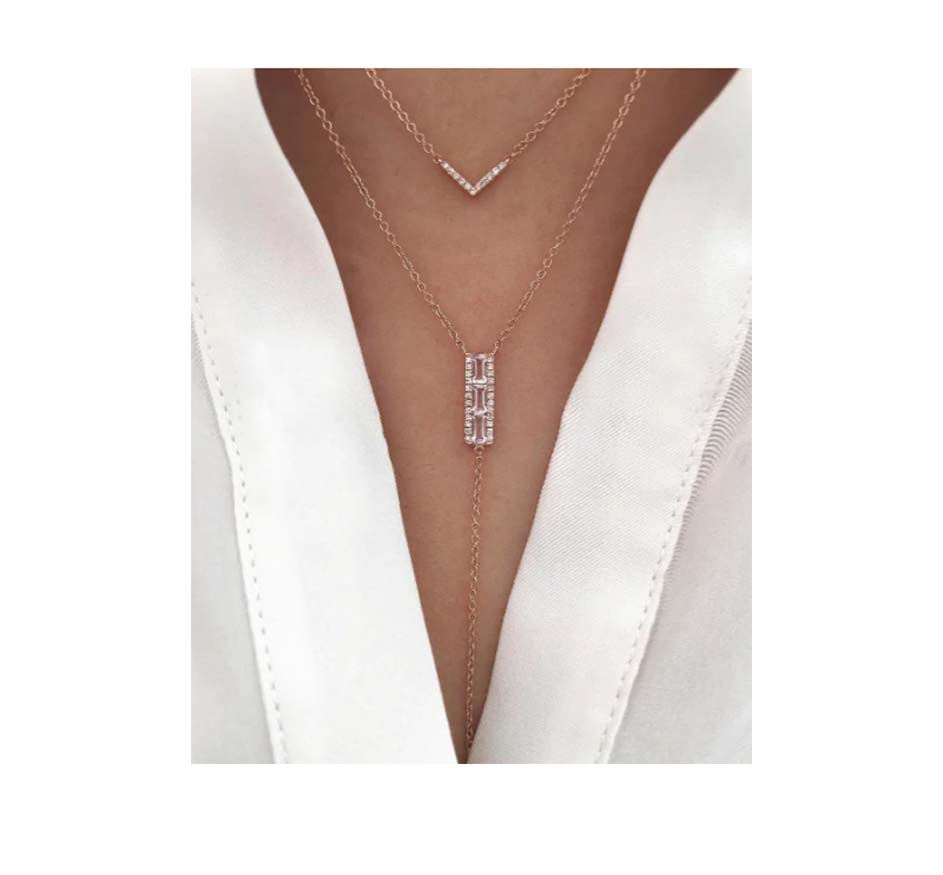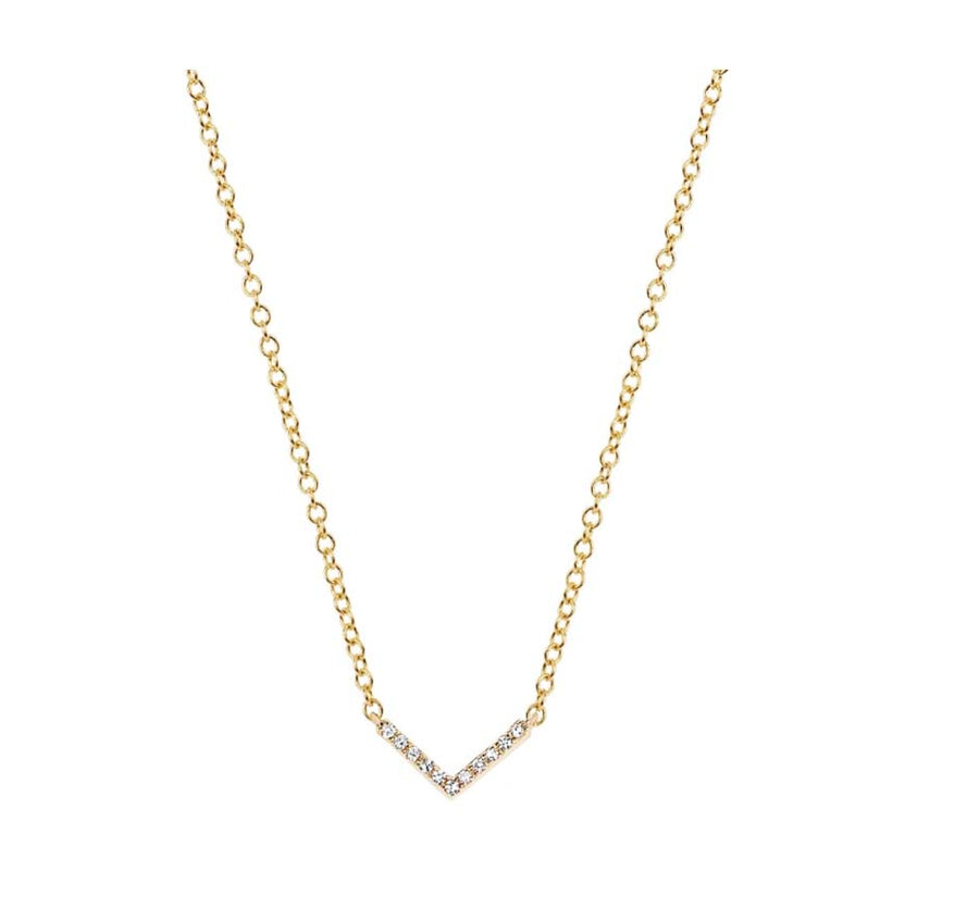The diamond chevron necklace boasts 0.03 carats of diamond set in 14k gold.