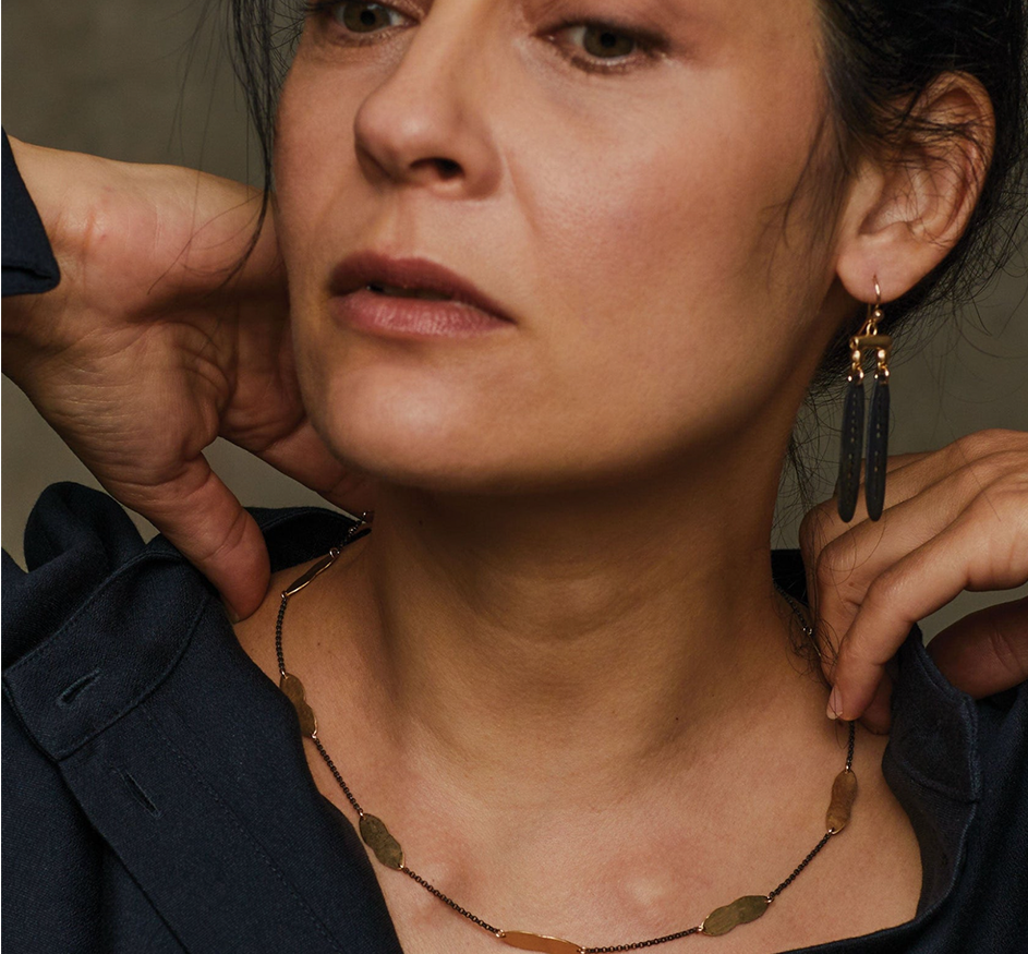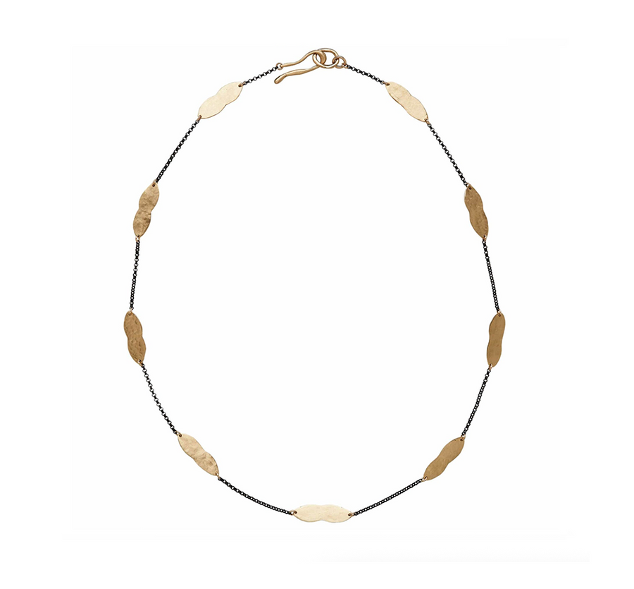 Petite Cloud Bronze elements float amid an oxidized Sterling Silver chain; 18 inches.