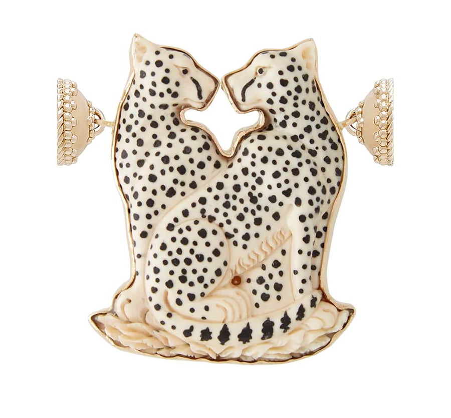 Unleash your wild heart. Let your centerpiece do the talking with this bone carved creation. Reversible to mother of pearl.
