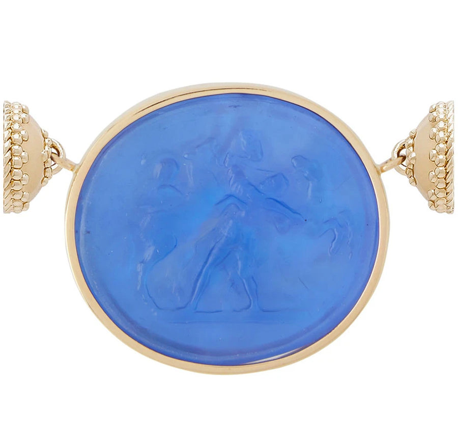 Handmade Murano glass set in 14K gold surround. Two centerpieces in one - reversible to mother of pearl.