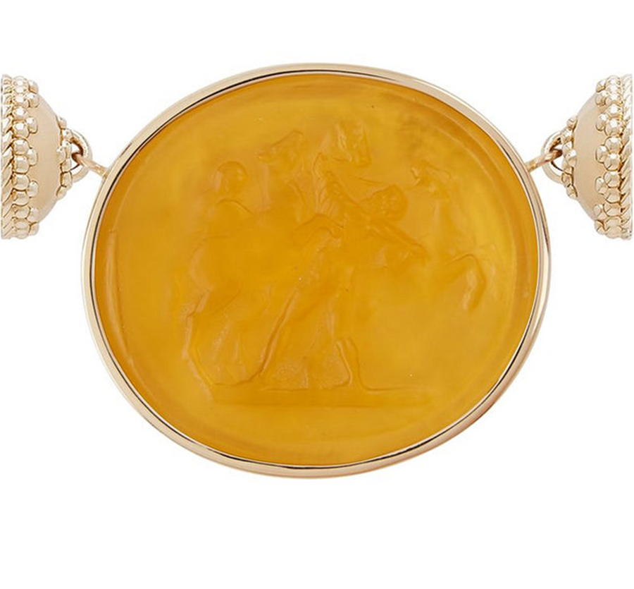 Handmade Horses Murano glass in citrine set in 14K gold.