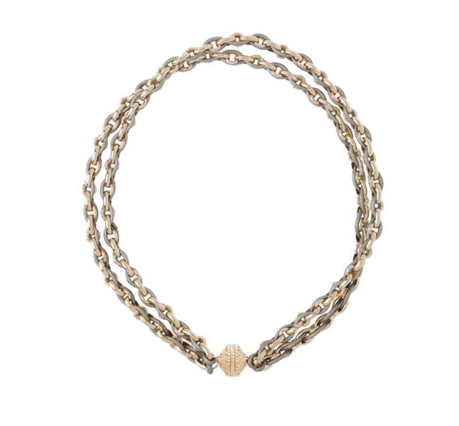 A perfect pairing - our favorite Madison chain with genuine leather woven throughout. Can be worn short or long.
