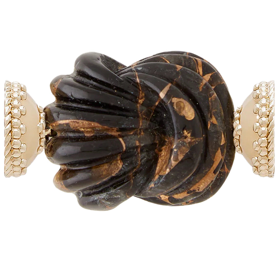 • Reconstituted Dalmatian Bronze—a combination of White Calcite, Obsidian, and Bronze, 14K Yellow Gold Plated ClaraClasp™