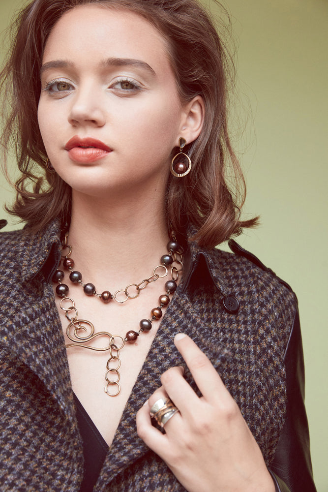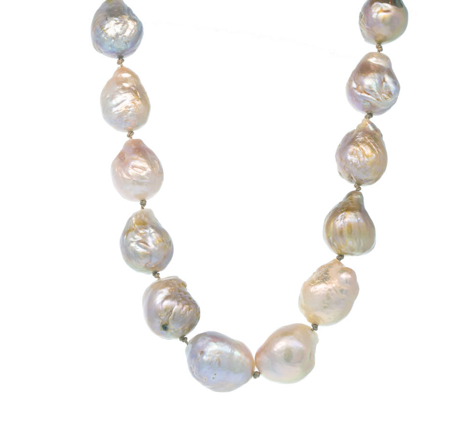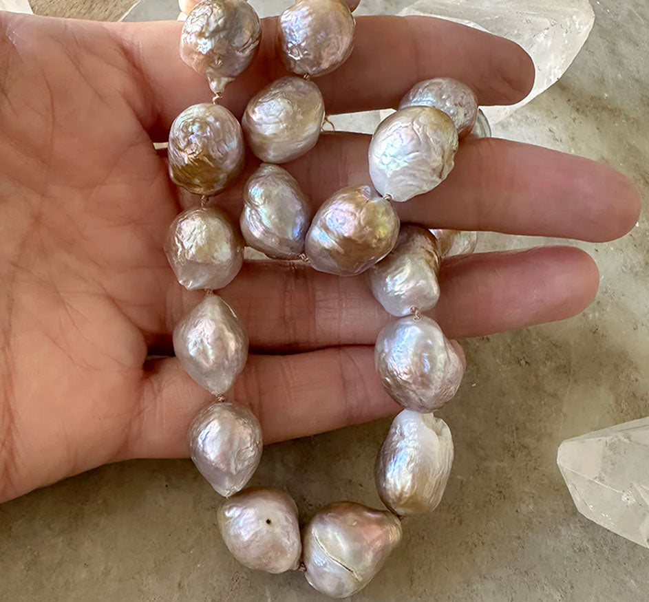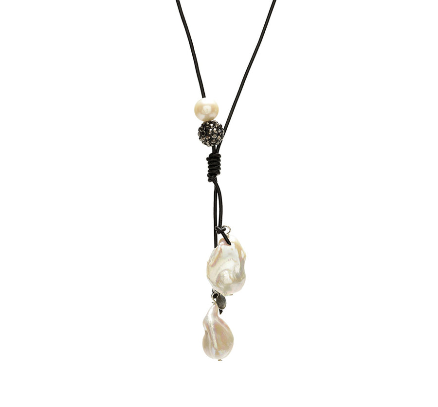 Stylish leather necklace with two oversized baroque pearls. White baroque pearls Shambala bead with Czech crystals strung on Greek leather.