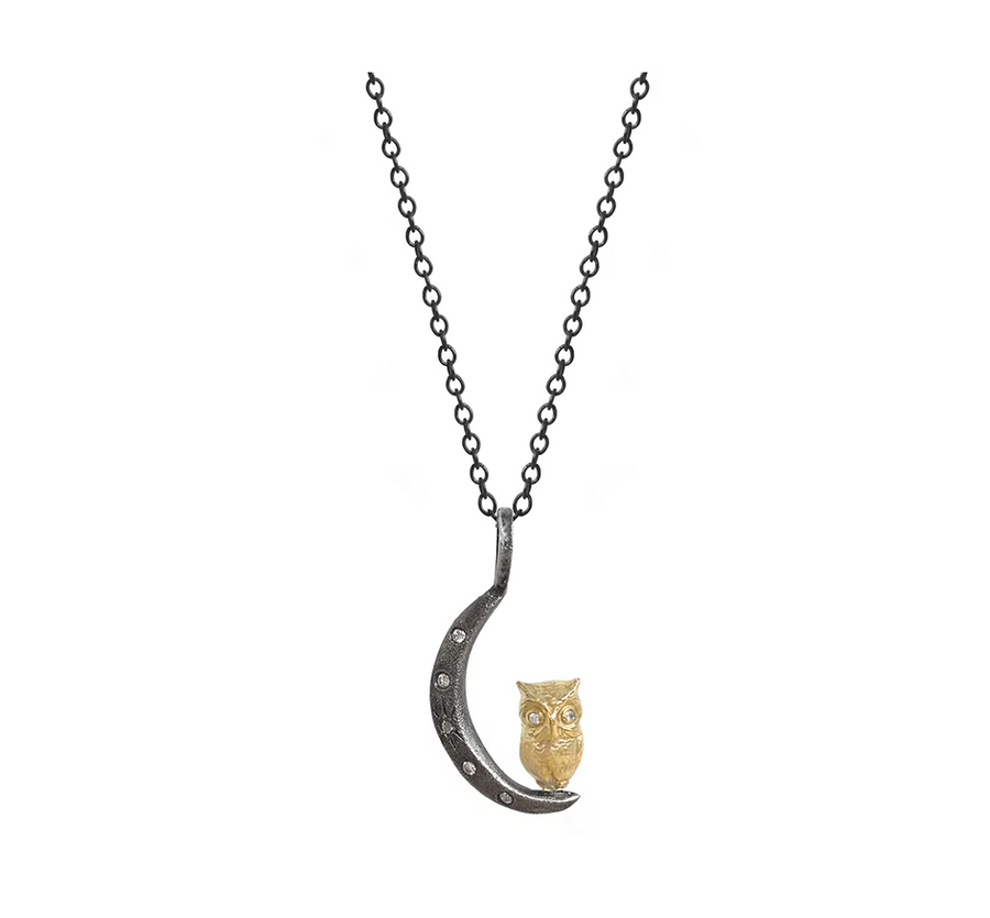 Oxidized Sterling Silver and 14K Gold Bee Pendent with Diamond 18" L