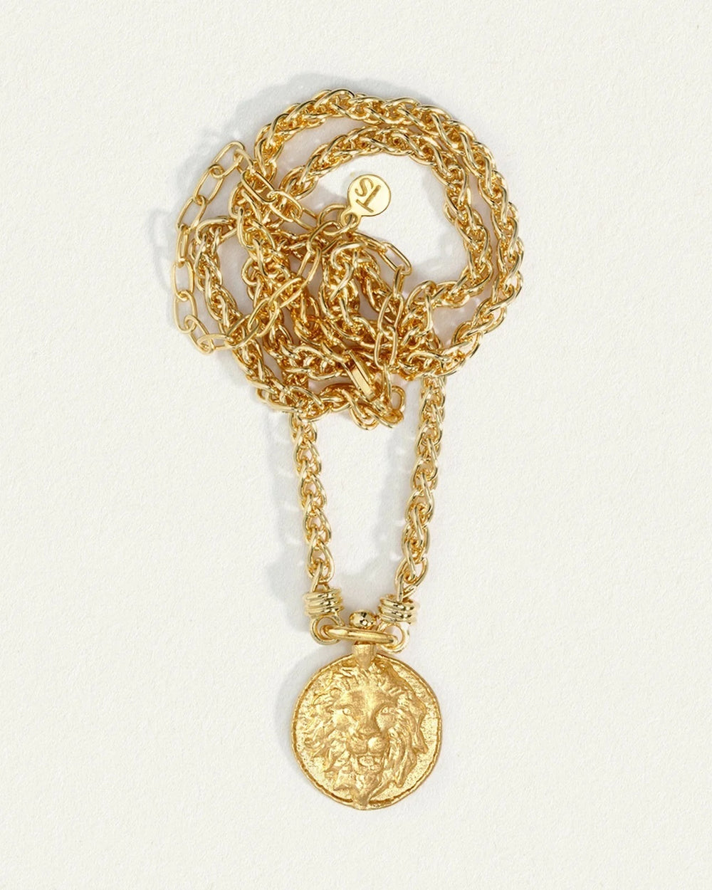 The Leon Necklace in polished 18K Gold Vermeil on a thick woven chain is a necklace that embodies and radiates personal power, courage, wisdom and pride.