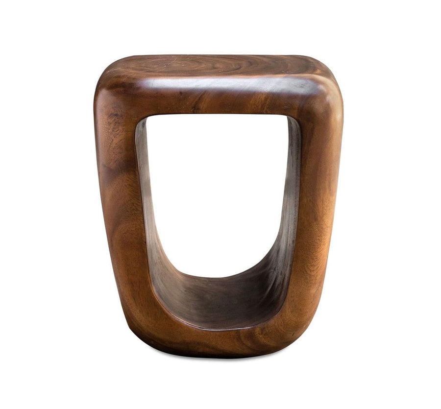 Solidly constructed of naturally finished suar wood, this whimsical accent piece acts as an artful stool or pull-up table. Solid wood will continue to move with temperature and humidity changes, which can result in cracks and uneven surfaces, adding to its authenticity and character.