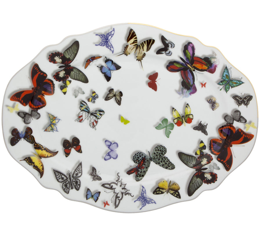 Small Oval Platter Butterfly Parade. A parade of real and imaginary butterflies flying over the pieces, with notable three-dimensional effects.