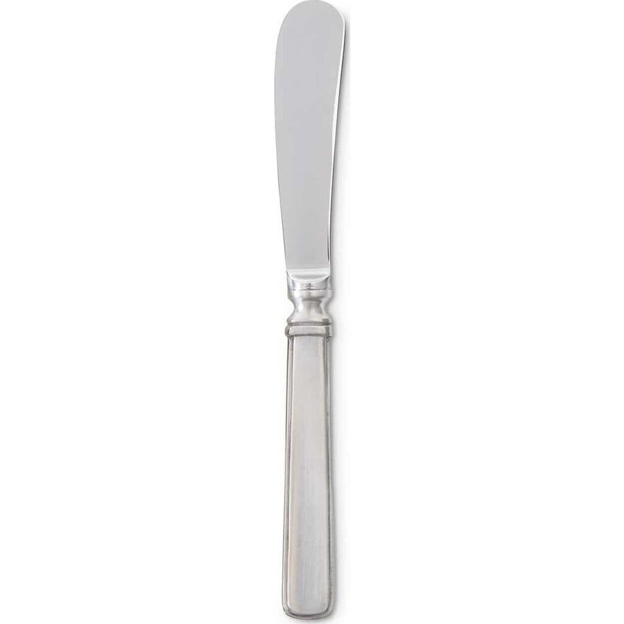 Gabriella flatware's classic, simple design features subtle architectural details including a thumbnail edge and a banded collar. The simplicity allows this butter knife to complement a wide range of dinnerware styles. A perfect size for individual bread plates, the Gabriella small butter knife combines a pewter handle with a stainless steel knife blade. A perfect size for use with a butter dish or butter dome, the Gabriella large butter knife combines a pewter handle with a stainless steel knife blade.