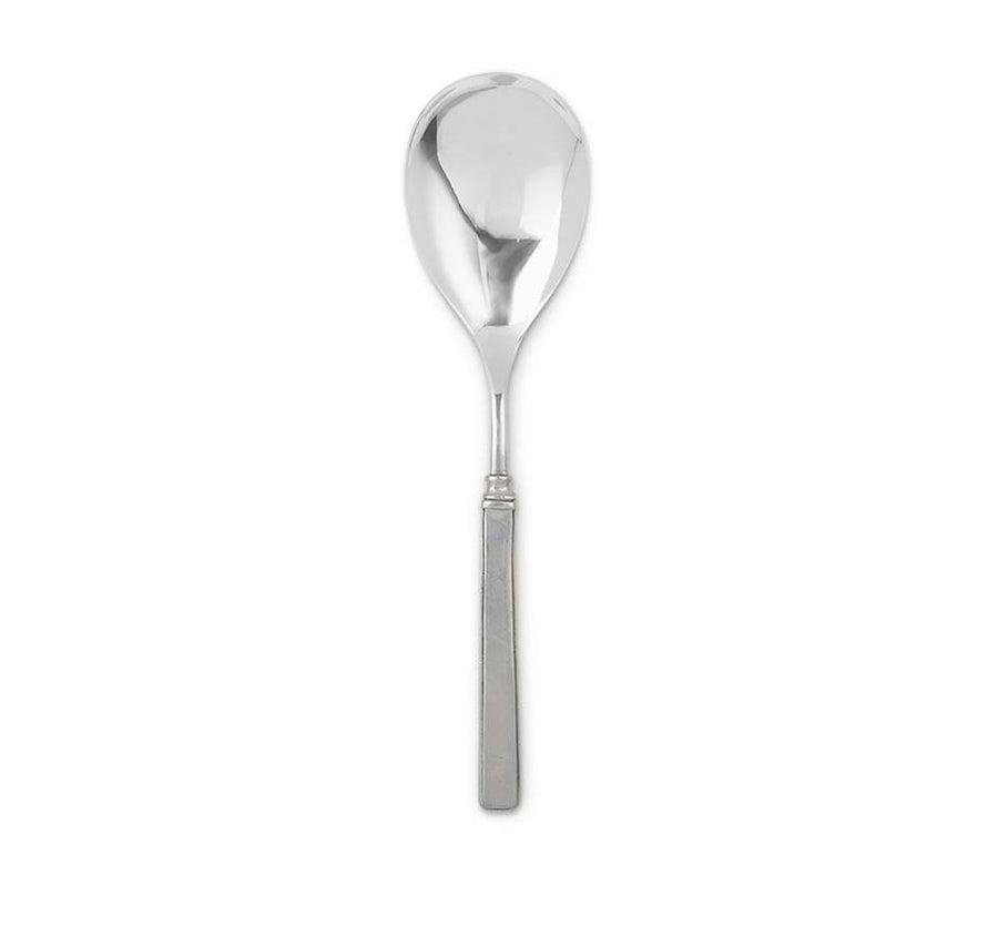 In Italy, generously-sized spoons of this design are used to serve healthy portions of polenta. Closer to home, we find this spoon has become an ultra-versatile addition to a well-outfitted kitchen: an elegant courier for skillfully delivering risotto, mashed potatoes, or smaller vegetables to patiently waiting plates.