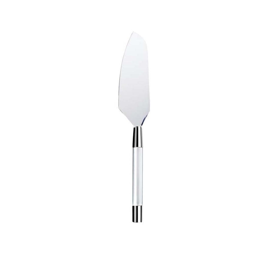 The elongated design recalls a supermodel working a catwalk. Sleek, imposing and, with an air of confidence that comes with owning your beauty. A beauty not to be withheld, but one to be flaunted and shared. The clear acrylic handle bolstered by a chrome-turned-brass ferrule reinforces the durability of stainless-steel construction in this flatware collection.