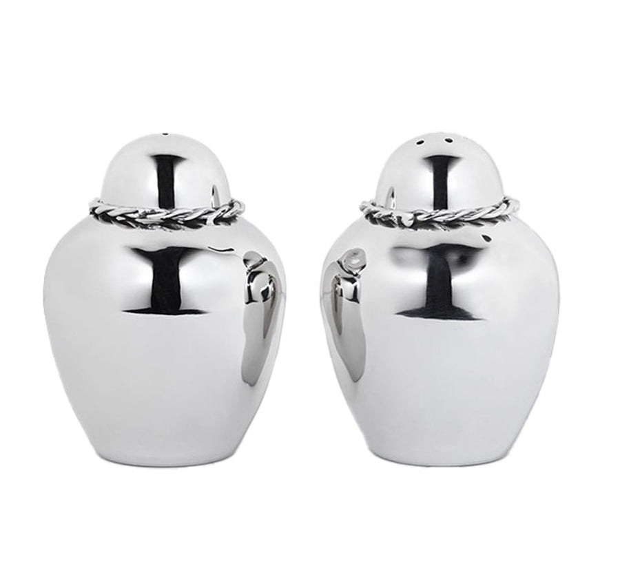 Handcrafted Mary Jurek Paloma stainless steel salt and pepper shakers. No-pitting modern shapes to accent any tabletop with understated good looks—what a pair of showoffs!