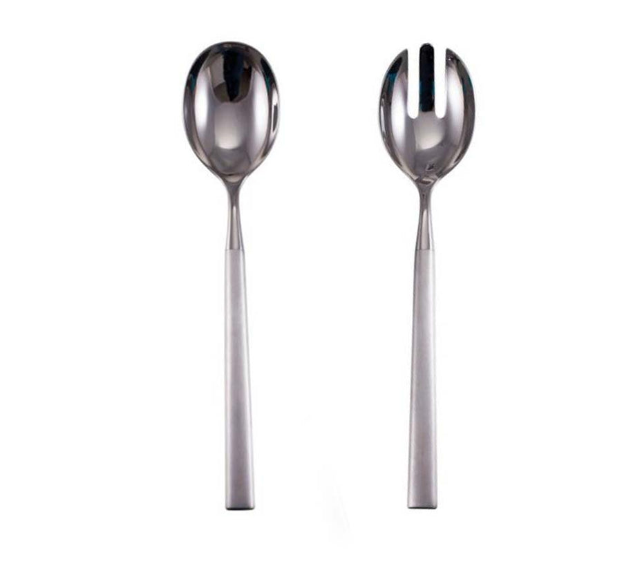 The stainless steel Hartland salad servers maintain a modern aesthetic through the use of simple styling. Hollow handles and a brushed finish lend this serving utensil set a refined yet practical appearance.