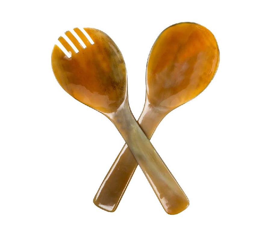Made of natural horn, our oversized serving set lend a touch of rustic elegance to your table. Hand wash. Variations to shape and color are essential to their natural beauty. No two are alike.