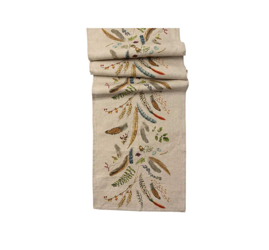 An ode to the earth’s natural beauty and abundance, the rich tones and textures of this pure linen table runner sets a stunning scene for all of your autumnal feasts. Inspired by family walks in the forest, this whimsical motif of flora and fauna specimens and found treasures are artistically rendered to serve as a beautiful backdrop for the season of gatherings.
